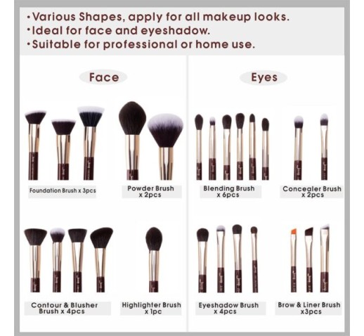 Jessup Zinfandel makeup brush set is inspired by the famous Zinfandel grape with rich aroma and beautiful color, which is exactly like our exquisite makeup life. 15-25pcs/set Makeup brushes set include various brush shapes, apply for all makeup looks, ideal for face and eyeshadow, suitable for professional or home use.