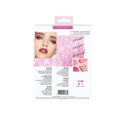 RT 400 Blush: Blend powder blush evenly for a smooth.Miracle Complexion Sponge: Blend liquid and cream foundation into a dewy finish.RT 300 Deluxe Crease: Layer and blend cream and powder eyeshadows evenly into eye crease.RT 402 Setting : Dust on highlighting or setting powders for illumination.RT 200 Expert Face: Buff liquid or cream foundation.