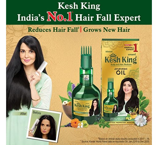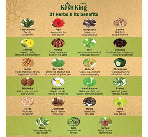 Kesh King ayurvedic oil is a proprietary medicinal preparation without any side effects. It is a complete solution for hair related problems especially hair fall. It is prepared using tel pak vidhi as prescribed in ayurveda using 21 precious herbs cooked in sesame oil.